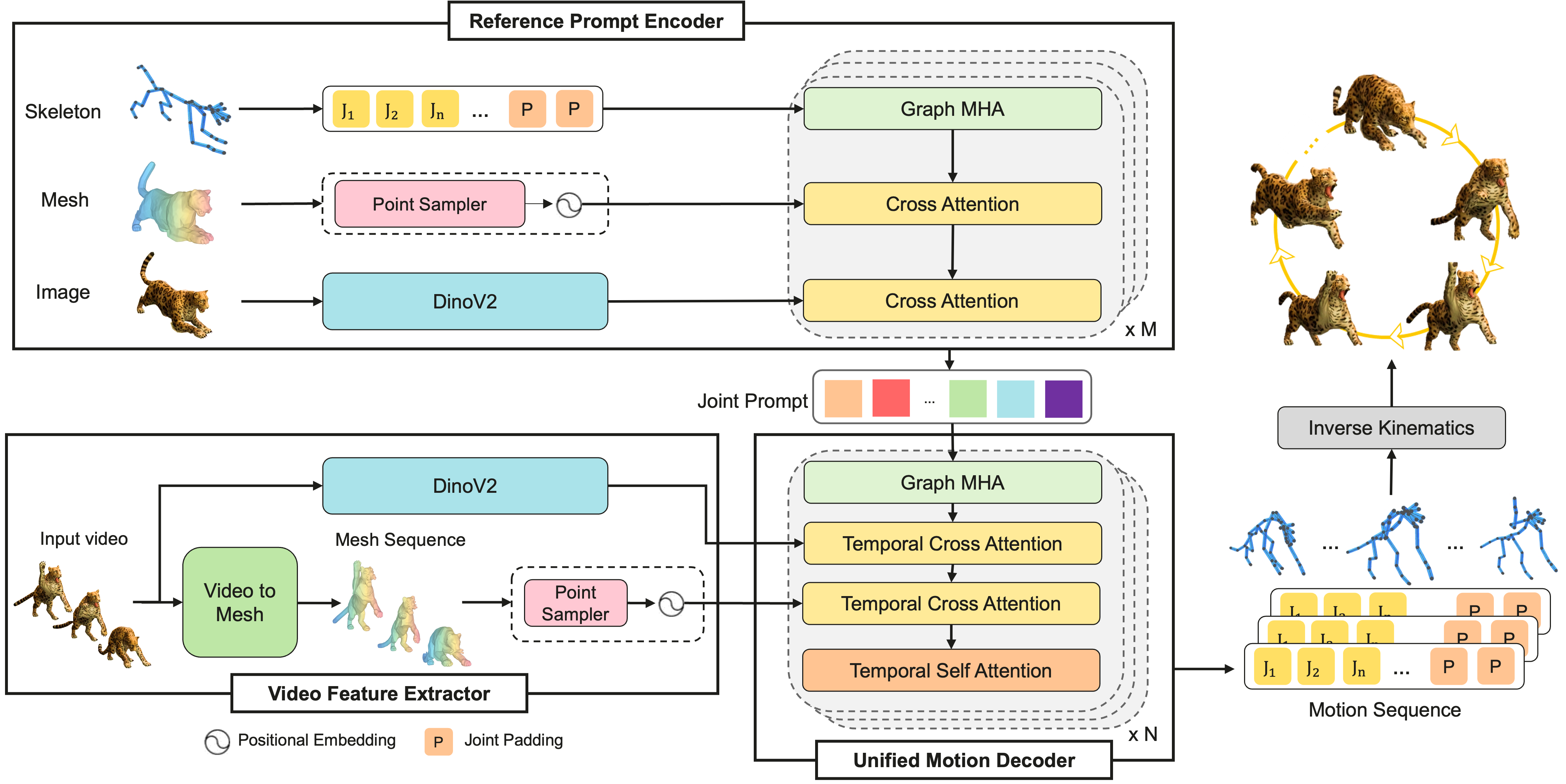 Motion capture now underpins content creation far beyond digital humans, yet most pipelines remain species- or template-specific. We formalize this gap as Category-Agnostic Motion Capture (CAMoCap): given a monocular video and an arbitrary rigged 3D asset as a prompt, the goal is to reconstruct a rotation-based animation (e.g., BVH) that directly drives the specific asset. We present MoCapAnything, a reference-guided, factorized framework that first predicts 3D joint trajectories and then recovers asset-specific rotations via constraint-aware Inverse Kinematics (IK) Fitting. MoCapAnything comprises three learnable modules and a lightweight IK stage: a Reference Prompt Encoder that distills per-joint queries from the asset’s skeleton, mesh, and rendered image set; a Video Feature Extractor that computes dense visual descriptors and reconstructs a coarse 4D deforming mesh to bridge the modality gap between RGB tokens and the point-cloud–like joint space; and a Unified Motion Decoder that fuses these cues to produce temporally coherent trajectories. We also curate Truebones Zoo with 1,038 motion clips, each providing a standardized skeleton–mesh–rendered-video triad. Experiments on in-domain benchmarks and in-the-wild videos show that \name delivers high-quality skeletal animations and exhibits non-trivial cross-species retargeting across heterogeneous rigs, offering a scalable path toward prompt-based 3D motion capture for arbitrary assets.